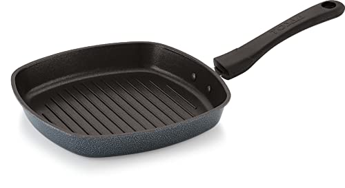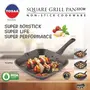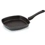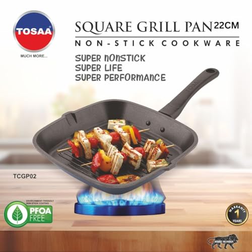 Size:22.5 cmEasy Way to Grill Meat and Veggies at Home If you want to indulge in tasty and healthy grilled food items you no longer have to invest in bulky and inconvenient outdoor grills as the Tosaa Square grill pan is an efficient solution for you indoor cooking needs. Featuring a square shaped pan with a ribbed bottom this grill pan helps you cooked grilled items such as kebabs paneer vegetables and more within minutes. The ribbed base of this pan also helps in collecting fat resulting in healthier food for your family. Smart Design that Combines Aesthetics with Functionality Made from high quality die-cast aluminium the Tosaa Square grill pan ensures high heat conductivity thereby providing high efficiency while cooking. Featuring a non-stick coating this pan can greatly reduce your oil consumption resulting in healthier meals for you and your family. Featuring an ergonomic handle that stays cool while being used on the stovetop you can easily handle this pan without worrying about burning your hands. Easy to Clean and Maintain Featuring a unique square design and made from high quality materials the Tosaa Square grill pan is easy to clean and maintain. Clean this pan using warm soapy water and a sponge after each use to prevent oil deposition and maintain its looks and functionality for a long time.