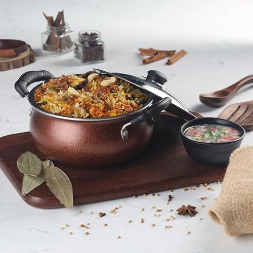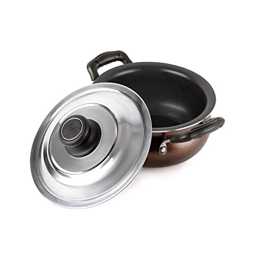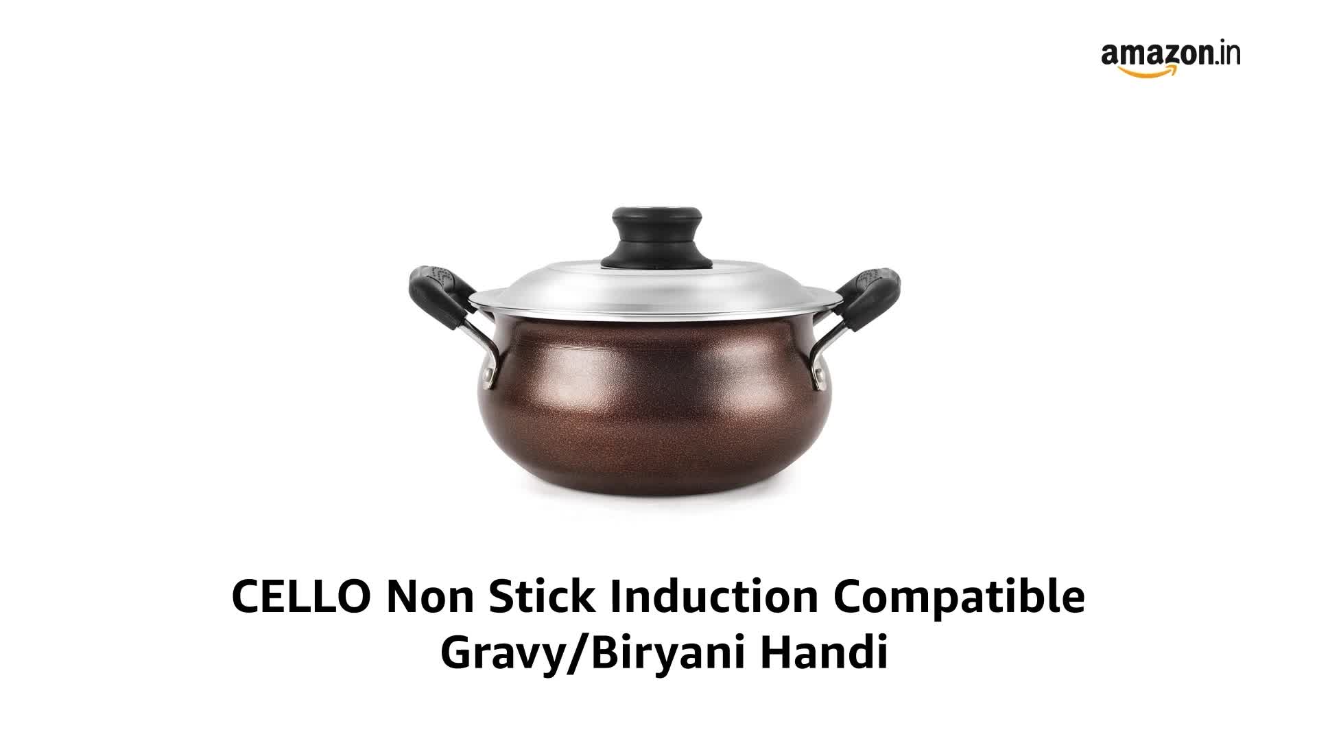 CELLO Non Stick Induction Compatible Gravy/Biryani Handi with Stainless Steel Lid, 1.5 Ltr, Brown, 1.5 Liter