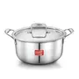 Made of thick gauge aluminum right throughout the cookware including the bottom and the body.430 magnetic stainless steel for Induction Friendly Cooking. This helps in even heat distribution, 20% less cooking time, minimum burning of food.