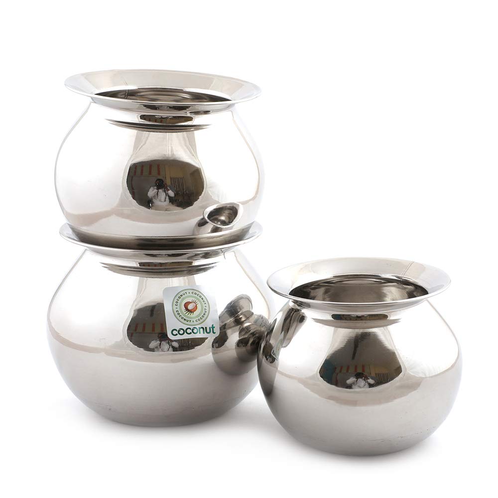 oconut is a range of innovative and products for home and kitchen utilities.This Balloon Handi is a multipurpose Stainless Steel used as Milk Boiler / Rice Cooker / Storaging Water & Etc.Induction Base Friendly.Made From Of Stainless Steel.Strong & Durable. Product content: SS Balloon Plain Handi- Set of 3 Pieces (Balloon Handi No 1 - Capacity -1500 ML Height - 5 Inch Dia0meter - 5.5 Inches) (Balloon Handi No. 3 - Capacity - 4000ML Height - 6.5 Inch Diameter - 7 Inches) & (Balloon Handi No.5 - Capacity - 7000ML Height - 8 Inch Diameter - 8.5 Inches)
