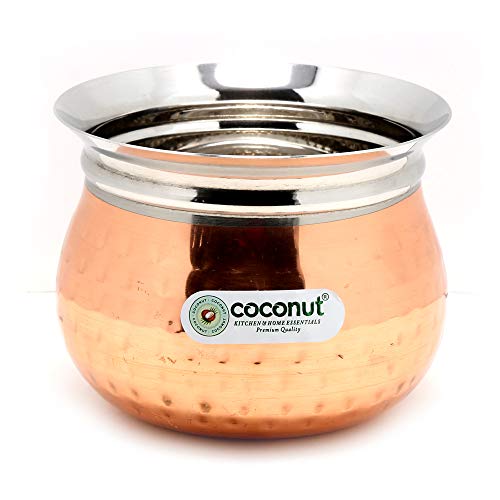 Coconut is a range of innovative and quality products for Home and Kitchen. This Iveo Handi is made from High Quality stainless steel with heavy guage for High Durability. Rust proof and Food Grade steel. Induction and Gas Friendly. Compaq size makes it easy to store in kitchen cupboards. Easy to clean and maintain. When not in use stack the smaller container inside bigger containers saving storage space. Ideal for daily use on your Gas Stove. Energy efficient. Heats evenly and cooks faster. Food will not stick to your pan. This Temple Handi comes with ( Without Handle & Lid). Product content: Coconut Stainless Steel Hammered Copper Iveo Handi 1 Unit. Product Dimension - Product Dimension - Width - 15 Cm Length -15 CM Height - 13 Cm. Capacity 1850ML.