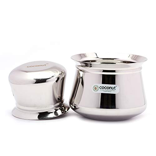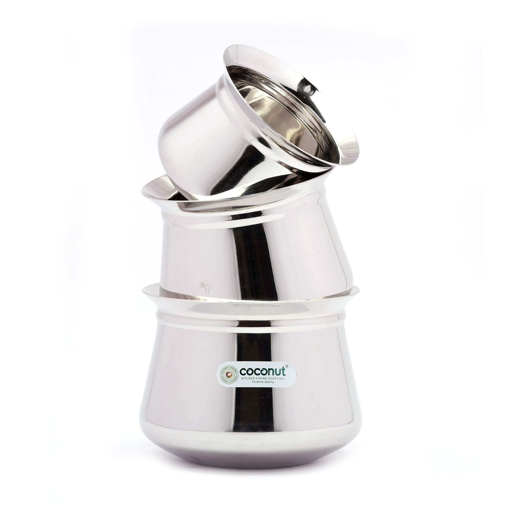 Coconut Stainless Steel - Cookware/Temple Handi - Set of 3 - Capacity - 600/750 & 1500 ML - Diameter - 4.25 5 & 5.5 Inches