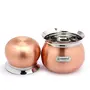 Coconut is range of Innovative and Quality products for Home and Kitchen. This Tomato Copper Handi Set is ideally used to Serve Food like Curries Dals Biryani and other Indian Dining Experience for Dinnerware products. The Stainless steel surface preserves the taste and nutritional qualities of foods and it is a Food Grade product. It is ideally used for Home Restaurants Bars and catering services which comes with Inside Stainless steel & Outside Copper Based. Product content : Tomato FC Copper Handi Cookware 3 Unit (Without Lid & Handle ). Product Dimensions (Size 1 - Width - 4.5 Inches & Height - 3.5 Inches Capacity 550ML) (Size 3 - Width - 5 Inches & Height - 4 Inches Capacity 800ML) & (Size 3 - Width 5.5 Inches & Height 4.3 Inches Capacity 1000ML).
