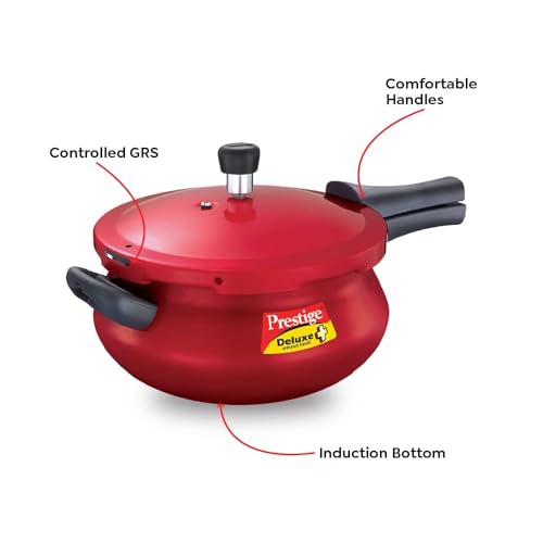 Deluxe Plus Aluminium Pressure Handi comes with induction base which makes it the most versatile pressure handi available. It can work on any heat source and enables you to cook delicious dishes in a smart way at the highest level of safety through its Pressure Indicator which rises above the lid under pressure and drops when the pressure inside falls to zero giving a visible indication to safely open the handi. The Deluxe plus Pressure Handi is aesthetically designed to give you the flavour of traditional Indian cooking.