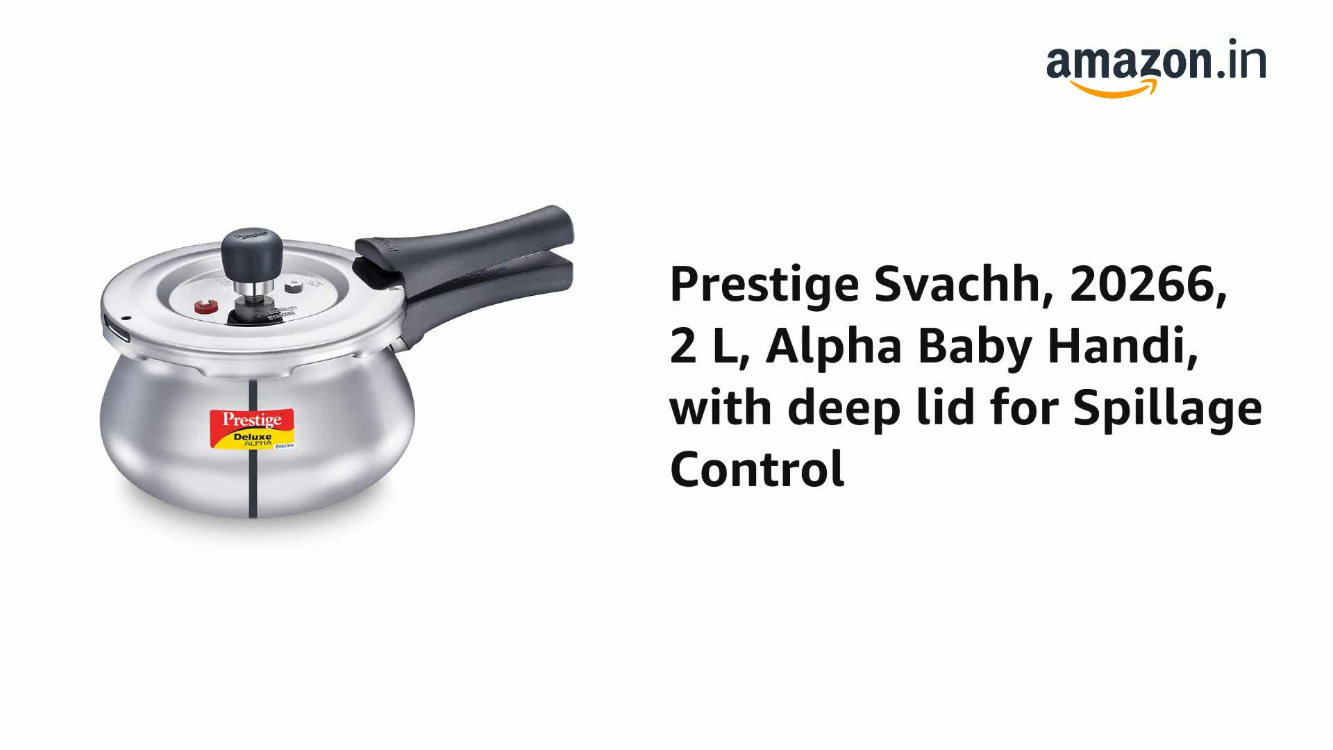 Prestige Svachh, 20266, 2 L, Alpha Baby Handi, With Deep Lid For Spillage Control, Stainless Steel, Silver, Outer Lid, 2 Liter