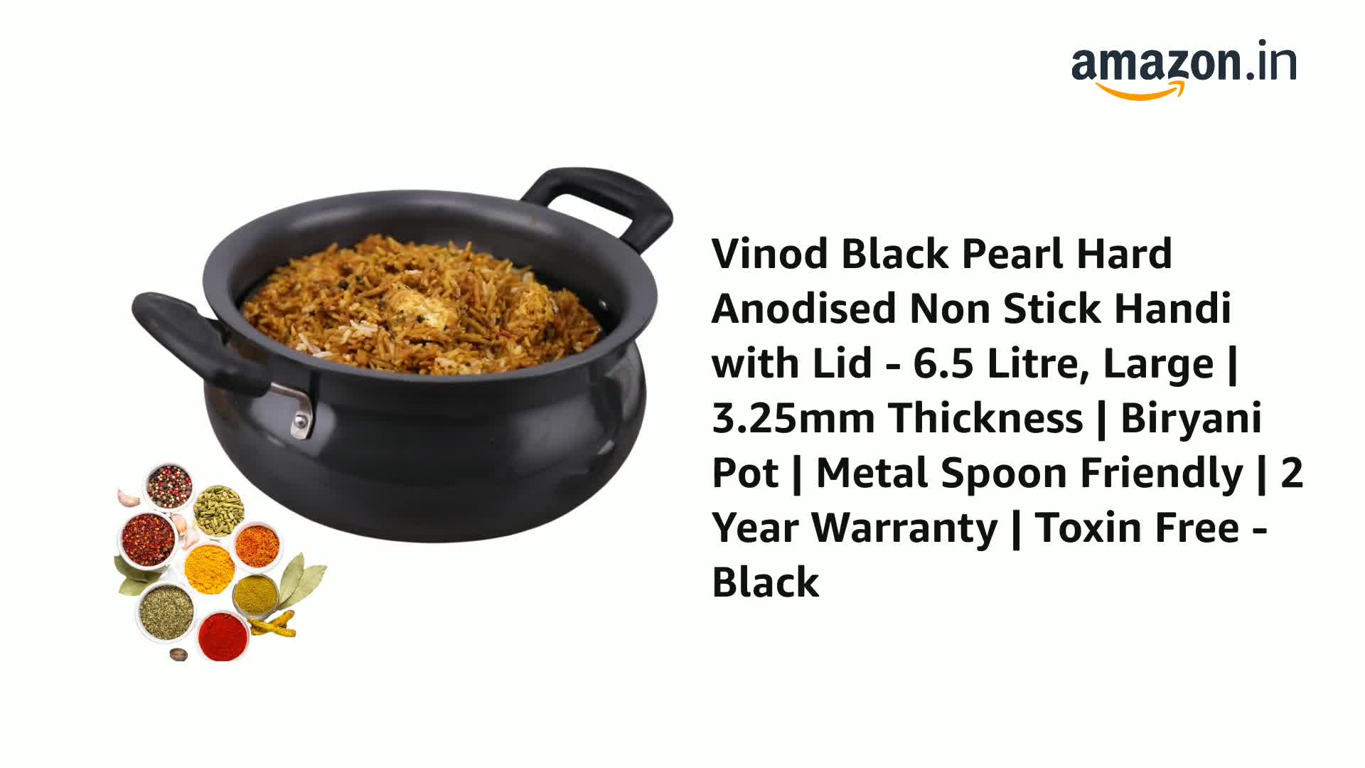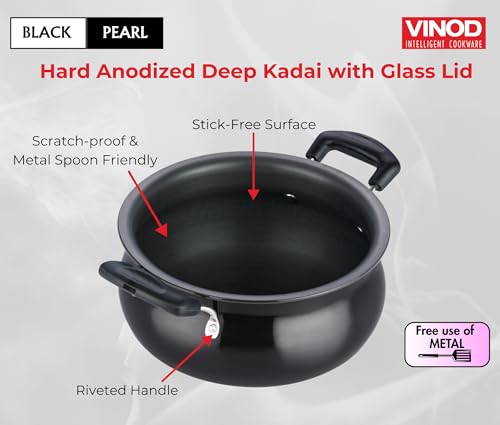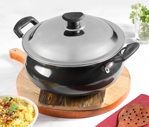 Vinod Black Pearl Hard Anodised Non Stick Handi with Lid - 6.5 Litre, Large | 3.25mm Thickness | Biryani Pot | Gas Stove Compatible | 2 Year Warranty | Toxin Free - Black