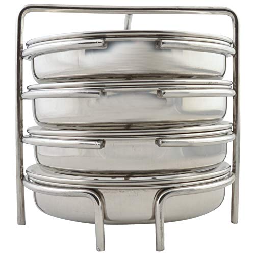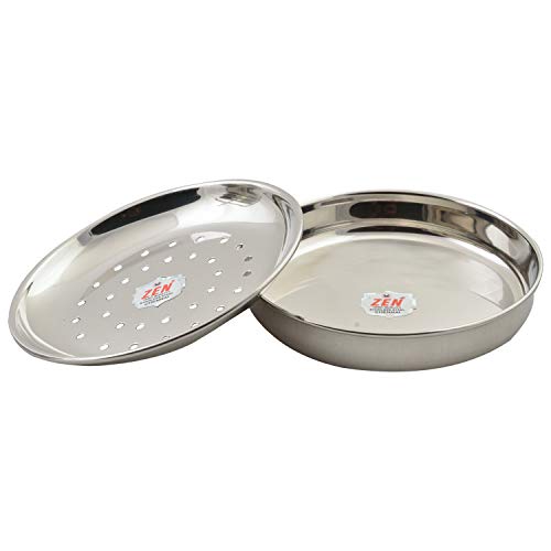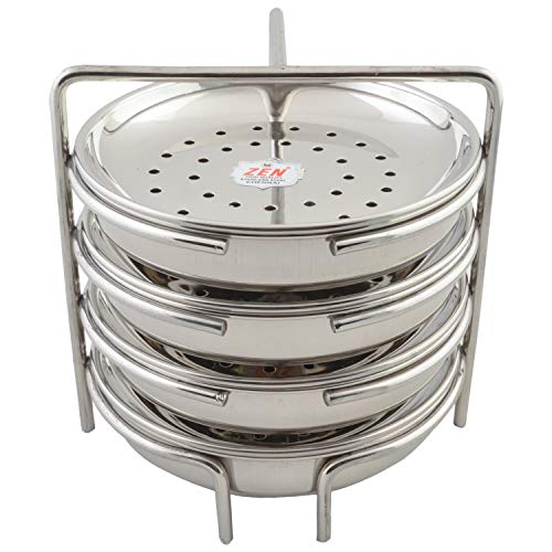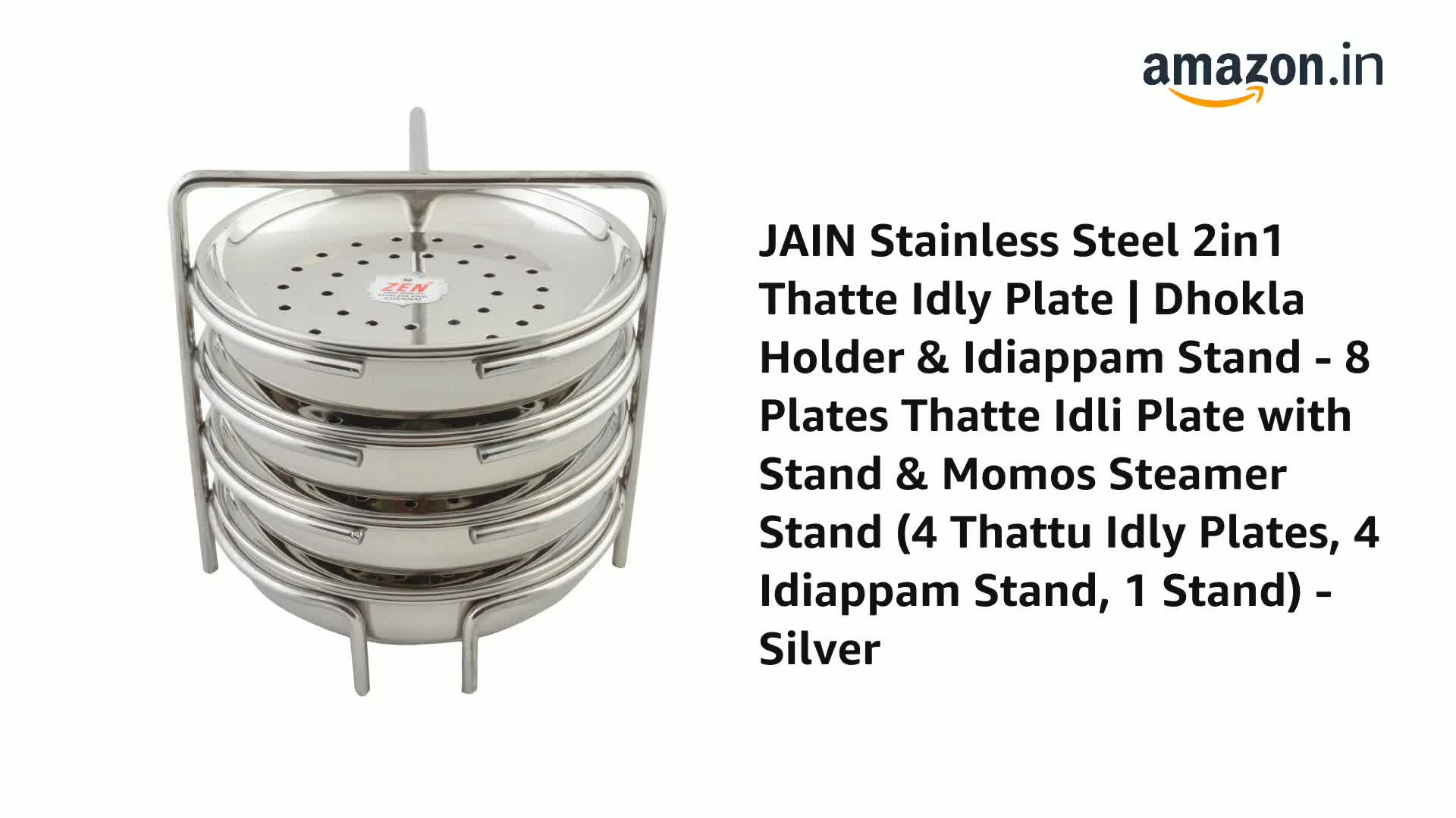 JAIN Stainless Steel 2in1 Thatte Idly Stand | Dhokla Maker & Idiappam Stand - 8 Plates Thatte Idli Plate & Momos Steamer Stand (4 Thattu Idly Plates, 4 Idiappam Stand, 1 Stand) - Silver