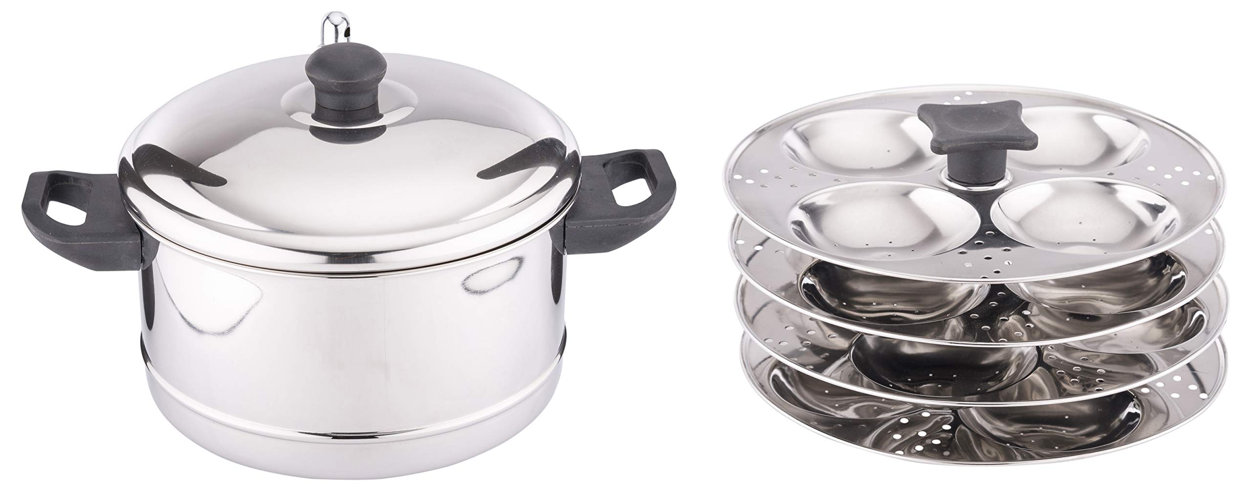 Coconut is a range of innovative and products for home and kitchen. The is made from stainless steel. Cookware feature: Gas stovetop compatible. Package contents: 1 pot 4 idly plates and 1 ss lid. Capacity: 1. 5 liters cavity: 100 ml product dimensions (l x b x h): 12. 7 cm x 11. 4 cm x 12. 7 cm.