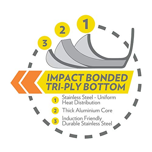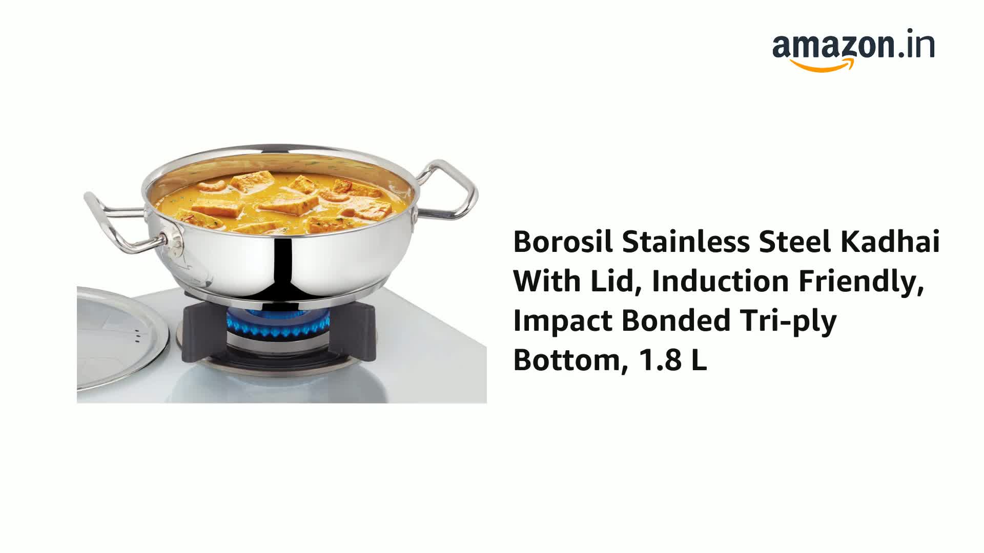The Borosil stainless steel kadhai is a high-quality stainless steel vessel that will easily become your go-to for everyday cooking. The size and construct of this vessel makes it ideal for cooking stir-frys and halwas. Made of high-quality stainless steel this kadhai delivers professional results every time. The stainless steel cooking surface does not discolor react with food or alter flavours. The base of the pot is made of an encapsulated tri-ply base which heats quickly and allows heat to be evenly distributed providing a smooth and flawless cooking experience.