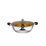 Stainless Steel Kadai with thick Glass Lid with Steel Knob Stainless Steel 0.83 mm thickness Induction Stove Compatible Perfect choice for Dep fry Gravy Fry Noodles Fried Rice and etc.