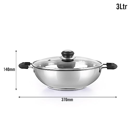 1 Stainless Steel Kadhai 3 ltr with Glass Lid