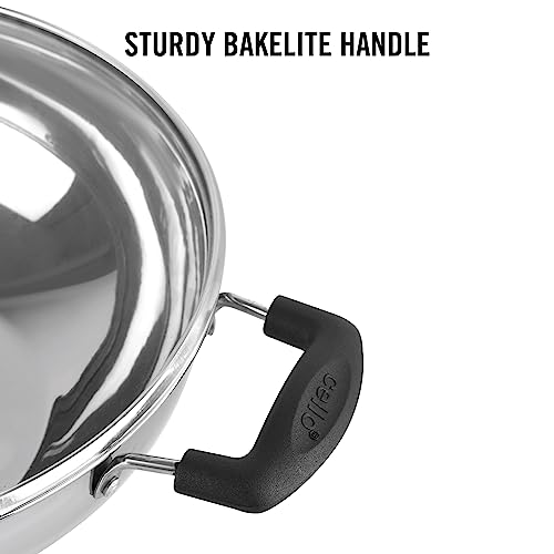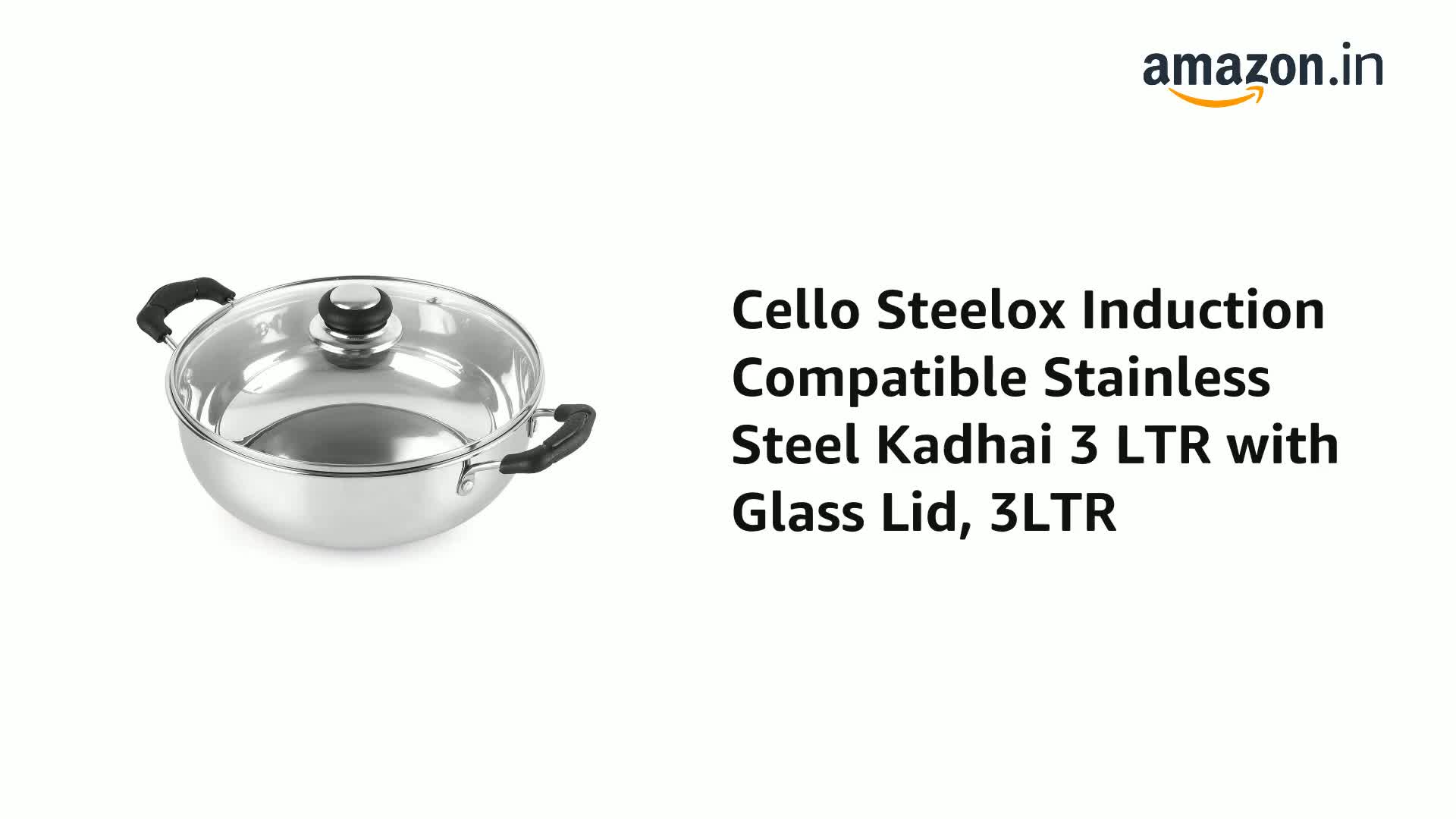 Cello Steelox Stainless Steel Kadhai 3 ltr with Glass Lid is a reliable cookware set that brings you hassle-free cooking experience. It contains one stainless steel kadhai of 3Ltrs. Made from 100% food grade stainless steel it is strong and durable. It is optimum for cooking frying and serving food for one person as well as a whole family. This Kadhai has a induction bottom which is also gass stove compatible and hence brings convenience to your kitchen. The double riveted ear handles of the kadhais provide a firm grip. It is easy to clean very stylish and will become an eye-catching piece of cookware to have in your kitchen! Cello has been with you serving you accompanying you for generations in each and every space of your home from living room to dinning room bedroom to bathroom. You have made us a part of your family. We want to strengthen this relationship by serving you more. Our products will help you spend great times with your loved ones by making household work an easier and enjoyable experience for you. We as a Cello Group is striving towards introducing a word class lifestyle to every individual for an enduring relationship of trust and commitment.