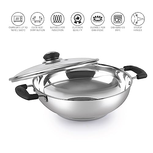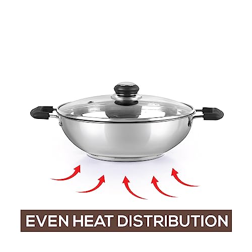 1 Stainless Steel Kadhai 3 ltr with Glass Lid