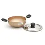 Coconut is range of innovative and products for Home and Kitchen. This 3 Mini Non Stick Cookware set is exclusively designed with 4 Layer Non -Stick coating range. This cookware set is devloped to retain the flavours & Spice with minimum /no oil consumption. Cooking with this cookware keep you & your family healthy & also enjoy the cooking with the touch of nature. The outside Non stock coating keeps your cookware beautiful & stain free. Thickness 3.0mm with 3 layer Coating. The pan made of high grade aluminium alloy. Product Content : Coconut Black n Gold Series Mini Non Stick 3 Pc Set ( Kadhai Fry pan & SS Lid ) - With Free Spatula