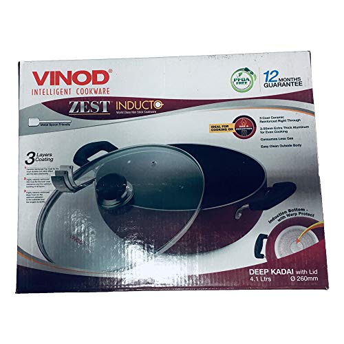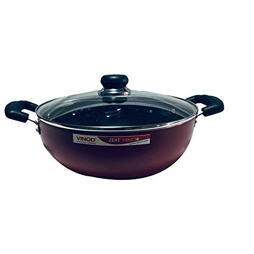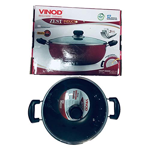 Vinod Deep Induction Nonstick Kadai with Lid red -4.1 LTR
