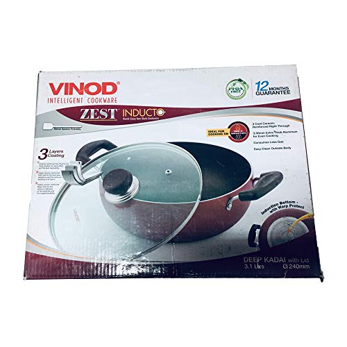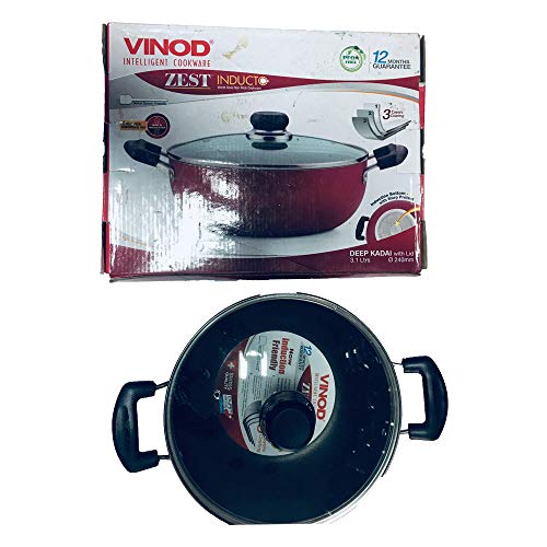 Vinod Deep - Induction Nonstick Kadai with Lid3.1 LTR red