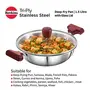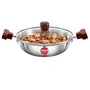 Hawkins Tri-ply Stainless Steel Deep-Fry Pan is designed to give you all the advantages of cooking in stainless steel while minimizing the disadvantages of sticking and burning that are normally associated with ordinary stainless steel. The cooking surface (inner surface) is made from 18/8 food-grade (AISI 304) stainless steel which is extremely hygienic most durable does not react with most foods and does not pit or corrode. The heavy gauge aluminium core spreads heat well for even cooking with no hot spots and retains heat for quick cooking. It is sandwiched between two layers of stainless steel and does not come in contact with food on the cooking surface. The base (outer surface) is made of AISI 430 grade magnetic stainless steel. Hence this cookware can be used on all domestic gas induction electric ceramic and halogen cooktops. The rounded curved sides and extra height are most suitable for deep-frying Puri Samosa Wada and stir-frying Stews Curries and vegetables. The rim of the pan has an all around ezee-pour no-drip flange - specially designed to pour or slide foods without spilling - suitable for left or right handed use. The toughened thick Glass Lid is made of heat-resistant glass with a strong stainless steel rim and stay-cool knob. It stops splatter of hot foods.