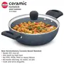 The Hawkins Ceramic Nonstick Induction Deep Kadhai has excellent release properties which means that it uses less oil when cooking. Additionally the nonstick coating is not spoiled by high heat which allows you to cook crisper and tastier food. The German ceramic used in the nonstick coating is of high quality and lasts longer making it a durable option for your kitchen. Another advantage of this pan is that the Hawkins Ceramic Nonstick does not contain PFAS or heavy metals making it a healthier and safer option for cooking. The attractive ceramic coating on the outside is scratch and stain resistant which means that it will stay looking new for years to come. In terms of performance this pan cooks fast and requires less oil. It also works on both gas and induction stovetops making it a versatile option for any kitchen. Overall this pan is an excellent choice for anyone who wants to cook healthy and tasty food quickly and easily. The toughened thick Glass Lid is made of heat-resistant glass with a strong stainless steel rim and stay-cool knob. It stops splatter of hot foods.
