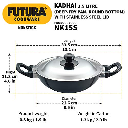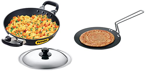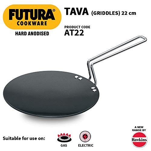 Hawkins Futura Hard Anodised Tawa 22cm BlackThe designers of Futura Cookware have spared no effort to provide you with the best possible cooking experience. Each pot or pan is made from heavy gauge commercially pure aluminium 3.25 mm to 6.35 mm thick for even heat dispersion and steady heat retention. Each pot or pan is given a technologically advanced surface coating to give you a superb cooking surface. Sturdy comfortable stay-cool handles form part of Futura Cookware using the finest materials in rosewood plastic or stainless steel.Each piece is individually packed in a strong attractive carton designed for protection in transit and sales appeal. An instruction manual with tested recipes comes free in each cookware carton (except Tadka Pans and the Ezee-Pour Saucepans).Hawkins - Q19 Futura Non-Stick Deep-Fry Pan (Kadhai) with Stainless Steel Lid 22cmAll but one of the Futura Nonstick Deep-Fry Pans have a round bottom and two short handles. The exception is then 2 litre Deep-Fry Pan (Stir-Fry Pan) with a flat bottom and a single long handle. The round bottom pans are also eminently suitable for stir-frying. The Breakfast Pan (Appachatty) with 0.9 litre capacity round bottom and two rosewood handles is ideal for the quick cooking of a variety of Indian and Western breakfast dishes.