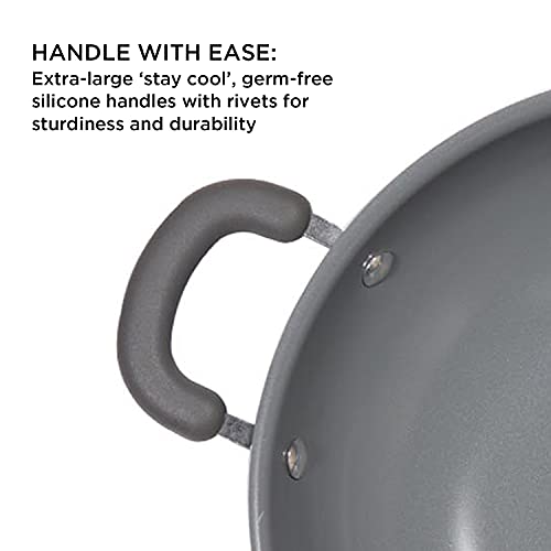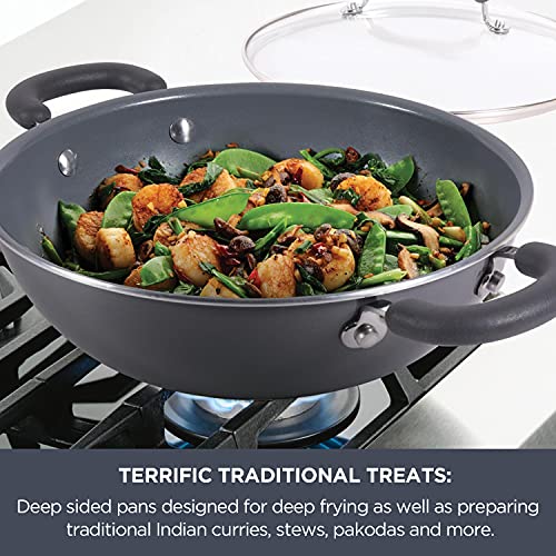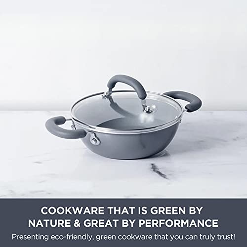 Meyer Anzen Healthy Ceramic Coated Cookware Kadai with Lid 20cm Aluminum Grey