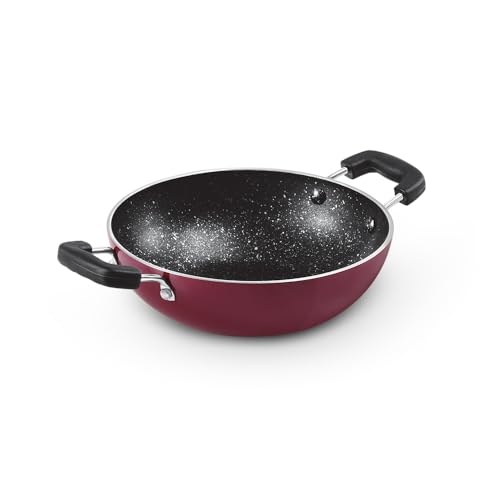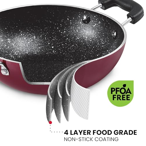 MILTON Pro cook Granito Aluminium Kadhai 16 cm, Non-Induction, Metal Spoon Friendly, 4 Layer Non-Stick Coating, Deep Kadai, Food Grade, 2 Years Warranty, Burgundy