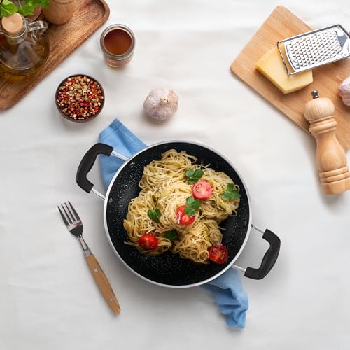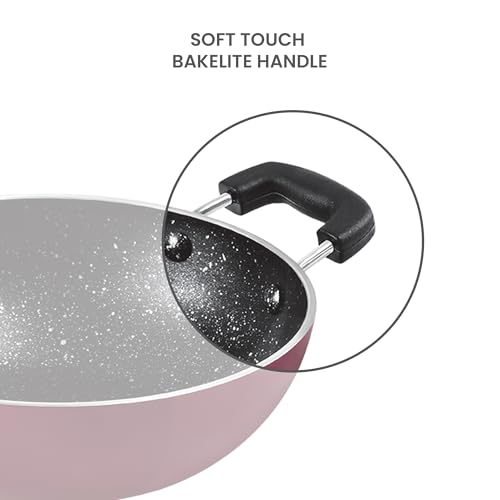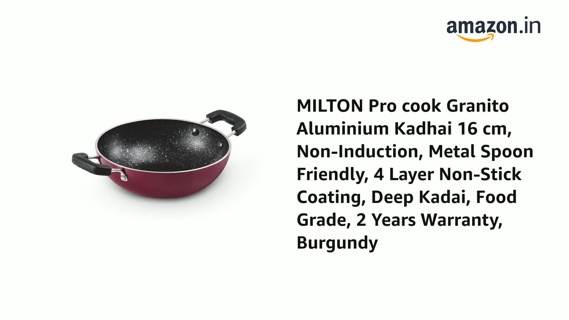 Introducing Milton Pro Cook 4 layer Food Grade Non Stick Granite Coating with sturdy bakelite handle. Featuring Granito Non Induction Kadhai which has 4 layer food-grade non-stick granite coating. This is ideal to cook delicious meals vegetables fry papadums samosas and cook world-class curries. It comes with premium soft-touch Bakelite handles ensuring comfortable grip. Perfect to use on medium heat with minimum oil or buttercream for those into healthy diet. Do not use sharp/ pointed spatula on nonstick surface.The pan can be easily washed in dishwasher.