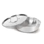 Presenting Triply Stainless Steel Tasla with Lid. Tri-Ply Stainless steel cookware get both beauty and performance while tackling your culinary needs. Cook-up a storm with this technology that facilitates even distribution of heat. Handling and maintenance comes easy with this stain and stick resistant range. The perfect cookware to fry papadums samosas and cook world-class curries. The lid helps retain the heat in the pan and thus accelerate the process of cooking evenly. Cook faster healthier and happier in this beautiful piece of art. The cookware range wins on aesthetics and thus can be taken directly to the dinner table from the hob. Compatible with all heating sources like induction gas hot plate it is easy to clean. Taslas are perfect for larger servings or for preparations that require depth like Pulao Biryani layered baked dishes etc. Triply cooking is a healthy way to cook your everyday meals much more enjoyable than most other materials.