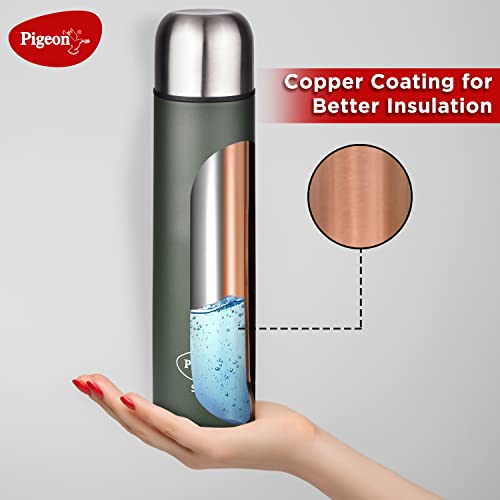 Pigeon by Stovekraft Stark Plus Galaxy Stainless Steel Double Walled Leak Proof Thermos Flask with Copper Coating Inside for Better Hot and Cold Retention 750 ml (Green)