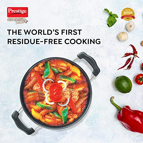 Prestige Omega Select Plus 20Cm- 2.2L Non-Stick Kadai with SS Lid |PFOA Free Teflon Non-Stick Coating | Scratch Resistant | Flat Base |Durable Handles |1 Year Warranty
