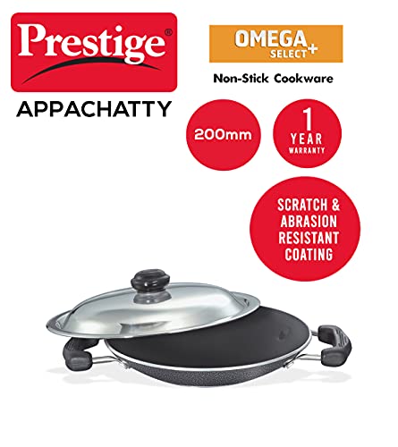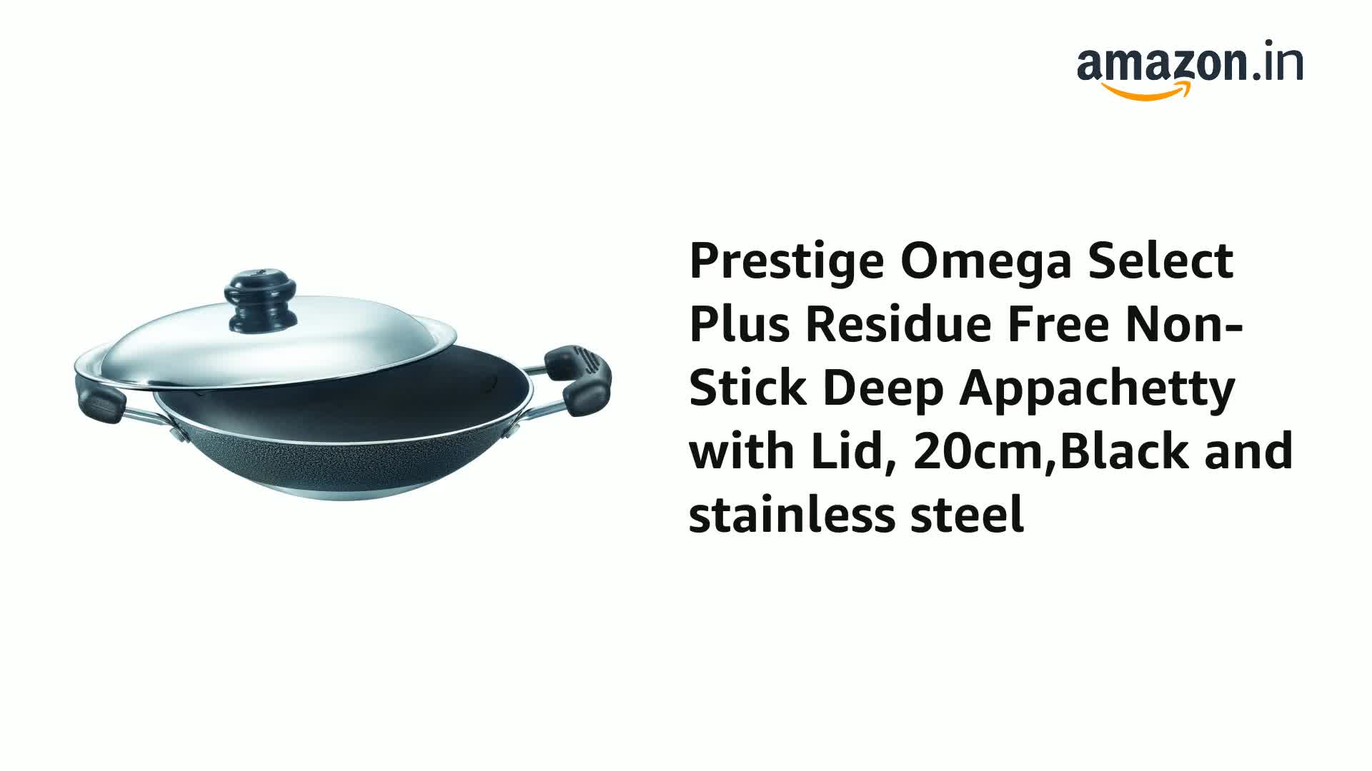 Prestige Omega Select Plus Non-Stick Deep Appachetty with Lid | Black | 20 cm | Residue Free | Scratch Resistant | Comfortable Grip | Spoon Friendly
