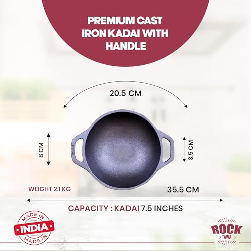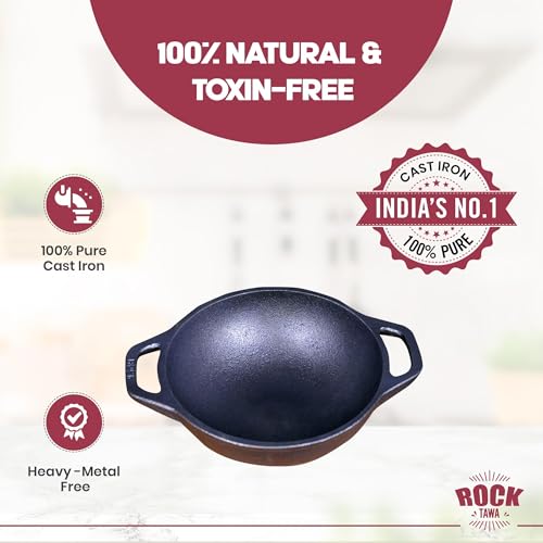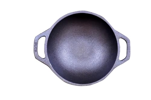 Rock Tawa 7.5 Inch Kadhai (Pre-Seasoned Cast Iron) Black