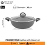 This Primestone Deep Kadhai with Glass Lid by Shri and Sam is built in heavy gauge aluminum that has non stick coating. Comes with a soft touch handle that smoothens the grip on your hand while lifting it. This Primestone Deep Kadhai with Glass Lid is easy to maintain and takes less space in your kitchen. This product has an induction bottom which means that it is compatible to all heating sources like gas electric induction etc.