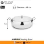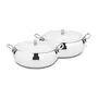 This is a 2 pcs serving bowl set by Shri and Sam that has a magnificent looks and classy design. This serving bowl set is made from stainless steel that can be perfect to serve a lot of things like curries snacks rice and a lot more. This serving bowl has a shiny finish on the outside which can make it suit any kind of table setting or kind of table counter. This set has a matt finish on the inside and same is for the lids they have a shiny finish on the outside while a matt finish on the inside. This serving bowl set can be perfect to impress your guests and can be right for everyday use too. This serving bowl set is appropriate for a family of 3-4 people.