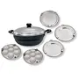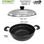 SPRINGWAY Super-5 Hard Anodised 4 Liter Multi Kadai with Lid and 5 Stainless Steel Plates (Black) 5 piece non-stick cookware set. Its stunning looks and striking black colour will definitely add a charm to your kitchen collection. The set consists of dosa tawa fry pan frying pan kadai kadai with tempered and glass lid but here we are introducing Aluminium kadai so one can cook and fry varieties of food like dhokla patra dal tadka etc. Into these cooking essential set. SPRINGWAY non-stick set needs lesser oil which contributes to keep your food much healthier than cooking in other kadais or pans. Its high gauge aluminium adds on to its cooking efficiency. This cookware set has a sturdy handle made of bakelite and is compatible with LPG stoves and induction. The other notable feature is that the lid has an air vent or steam hole that provides security by releasing extra pressure of steam while cooking continuously. So fry cook with confidence into Spring Way's non-stick cookware set.
