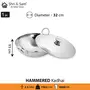 Stainless Steel 4.8 Litre Triply Deep Pro Light Weight Hammered Kadhai with Lid, 32 cm, 1985 Grams