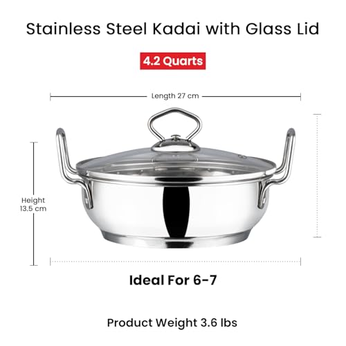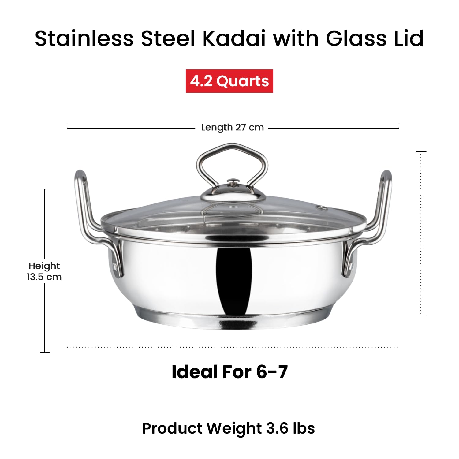 1-Piece Kadai (4.5 Litres/26cm) with Glass Lid