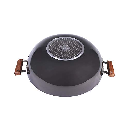 Stunning grey color with wooden handles give a sophiscated look to your kitchen. The process of anodizing makes the aluminium harder and non-reactive. This ensures years of hassle-free use faster cooking and even heat distribution. 60 microns anodized coating makes it 2.4 times harder than steel. Stain and corrosion resistant easy to clean and maintain. Suitable for use on hot plate hobs gass stove ceramic plate and induction. Reliable Wonderchef warranty T&C Apply