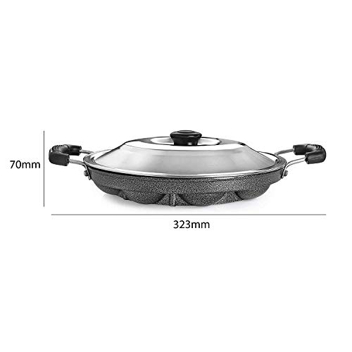 Prepare Healthy and Tasty Appams with Ease Popular in south India appams are made from fermented rice batter and are a healthy and nutritious breakfast dish. Use the Tosaa Non-Stick 12-cavity appam patra with lid to prepare up to 12 delicious and crispy appams at a time. Thanks to its superior German non-stick interior coating amount of oil needed to cook using this appam patra is very less thus resulting in healthier appams for you and your family. Superior Build Quality for Long-Lasting Use Made from die cast aluminium the Tosaa Non-Stick 12-cavity appam patra is built to last for a long time. With it superior non-stick coating technology that is durable and scratch-resistant you can freely use a wooden spatula while preparing your appams. Furthermore as it is made from PFOA-free materials you can be assured that no harmful toxins and chemicals will enter your food. Striking Looks Easy to Maintain Featuring an aesthetically pleasing exterior body in black colour the Tosaa Non-Stick 12-cavity appam patra can be a great addition to your kitchen collection. Due to its sturdy build quality and durable non-stick coating cleaning it is an easy task. Use a simple detergent solution with sponge and avoid using abrasive cleaners to maintain its looks and effectiveness for a long time.