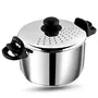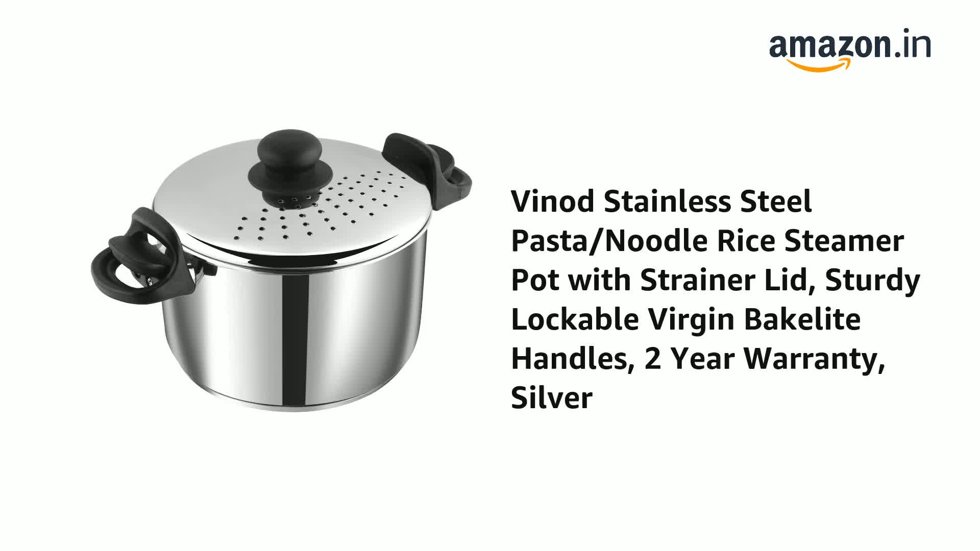 One should work smarter not harder in the kitchen when straining food. Average Indians cook everything that requires liquid to be drained from it - veggies Rice Pasta etc. This Vinod Stainless Steel Pasta Pot with Strainer lid is versatile and multipurpose You can strain excess water and later use the same pot for cooking . Included lid with built in straining holes with heat resistant handles that can be easily twisted and locks into place to make it safer and more convenient to drain excess water from the pot. Encapsulated Bottom that prevents food from getting burn. Comes with a lockable bakelite handle that prevents heat to transfer to your hands while cooking and locks the pot tightly . Great for more making more than pasta and can be used for cooking vegetables soups stews and more.