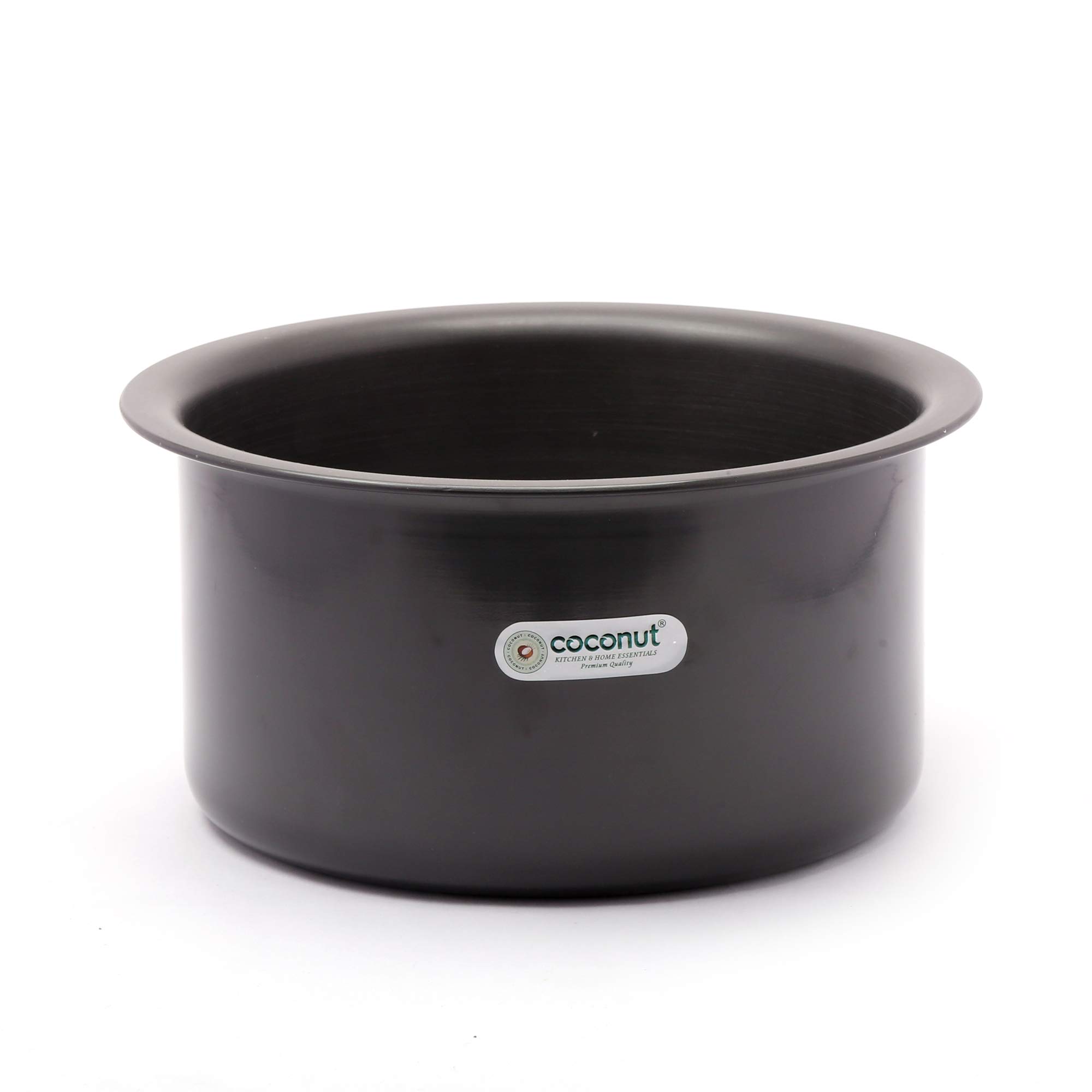 Coconut is range of Innovative and Quality Products for Home and Kitchen. This Hard Anodized Cookware products is crafted from material and designed for long lasting. This Cookware are highly durable Strong and Sturdy. It helps in even and quicker cooking which in perfect for daily cooking essentials for all kitchenware collections. The Diversified hard anodized ranges from Coconut includes Handi Tope Kadhai Tadka Pan and Saucepan. Product Content Hard Anodized Cookware Induction Bottom Tope set = 1 Unit Capacity - 1 Litre Gas Stove & Induction Base Top Compatible Black. Product Dimension (Size 10 - Width 17 cms &Height -8.5 Cms) Thickness 3.25MM & 4.2MM.