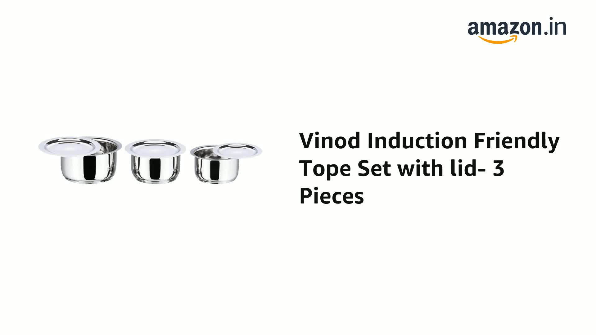 Vinod Stainless Steel 3 pc Tope Set with Capacity of 1.4 litres 1.8 litres & 2.2 litres with Stainle
