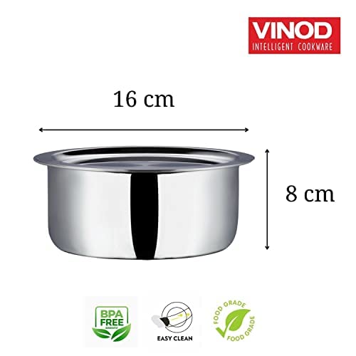 Vinod Platinum triply stainless steel series is made up with SAS technology which is a triple layer construction of stainless steel aluminium and stainless steel . The inner layer is made up of food grade 18/8 stainless steel which is hygienic stainless steel and rust free.The middle layer is consists of aluminium throughout this ensures in even heat distribution and uniform cooking of food. The third layer is made of 430 stainless steel for induction compatibility. This triply stainless steel tope is ideal for making tea coffee rice for boiling milk or for simply storing your food.