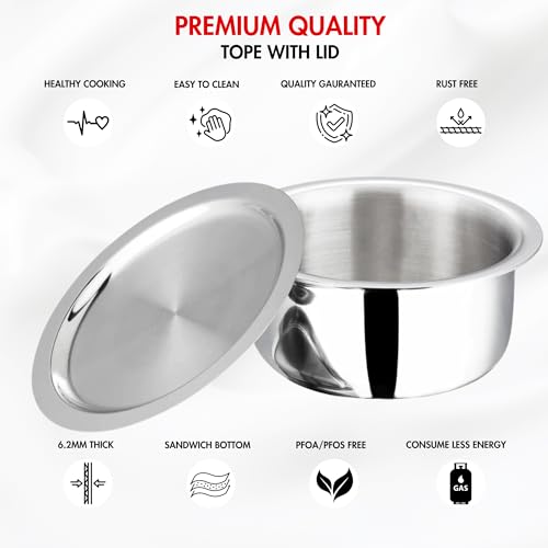 Platinum Triply Stainless Steel Tope with Stainless Steel Lid
