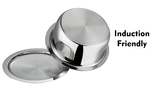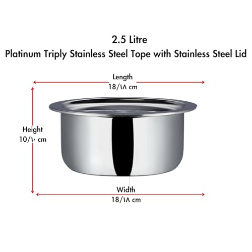 Vinod Platinum triply stainless steel series is made up with SAS technology which is a triple layer construction of stainless steel aluminium and stainless steel. The inner layer is made up of food grade 18/8 stainless steel which is hygienic stainless steel and rust free.The middle layer is consists of aluminium throughout this ensures in even heat distribution and uniform cooking of food. The third layer is made of 430 stainless steel for induction compatibility. This triply stainless steel patila is ideal for making tea coffee rice for boiling milk or for simply storing your food. This Tope is made from food safe triply stainless steel. It offers you a safe non-toxic and non-reactive cooking surface. The thick induction base which provides flexibility of using the Tope on gas stove induction hot plate. An ultra-efficient Induction friendly base ensures quick heat distribution. It offers superior heat distribution as well as shorter cooking time; inner layer of steel facilitates healthy cooking with minimal oil use.