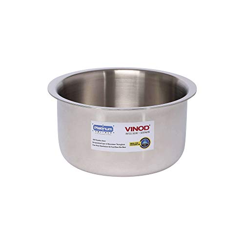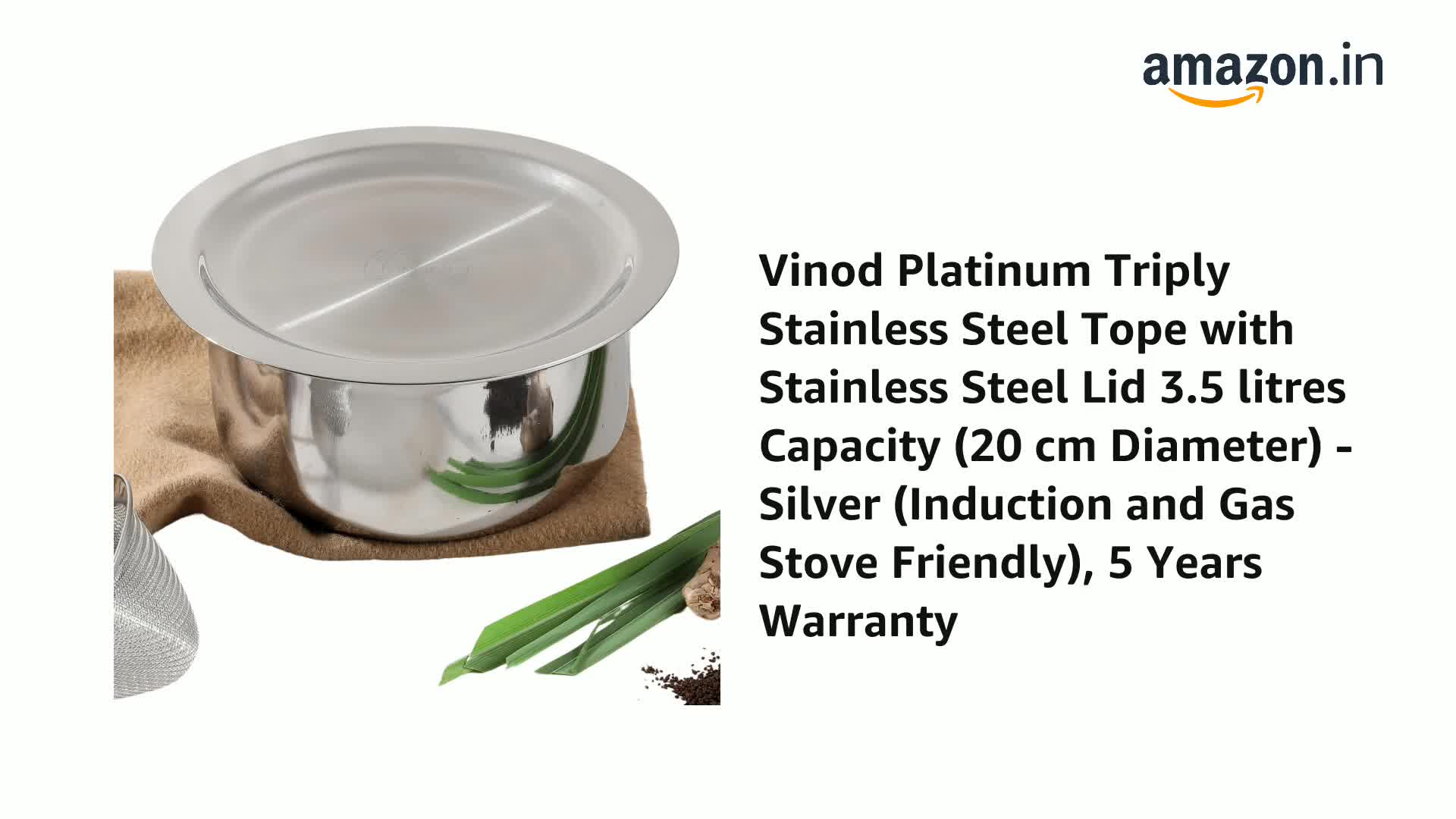 Vinod Platinum triply stainless steel series is made up with SAS technology which is a triple layer construction of stainless steel aluminium and stainless steel. The inner layer is made up of food grade 18/8 stainless steel which is hygienic stainless steel and rust free.The middle layer is consists of aluminium throughout this ensures in even heat distribution and uniform cooking of food. The third layer is made of 430 stainless steel for induction compatibility. This triply stainless steel patila is ideal for making tea coffee rice for boiling milk or for simply storing your food. This Tope is made from food safe triply stainless steel. It offers you a safe non-toxic and non-reactive cooking surface. The thick induction base which provides flexibility of using the Tope on gas stove induction hot plate. An ultra-efficient Induction friendly base ensures quick heat distribution. It offers superior heat distribution as well as shorter cooking time; inner layer of steel facilitates healthy cooking with minimal oil use.