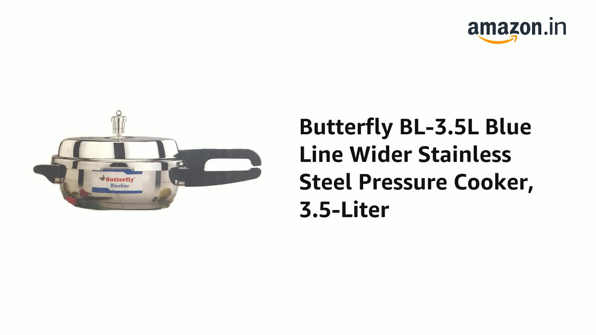 Butterfly Blue Line Stainless Steel Pressure Cooker. Stainless Steel Pressure Cooker with ATB. Body & lid made of premium quality Stainless Steel. Aluminum Thermal Base Gasket release vent. Comes with Safety Valve and Ergonomically designed handles.