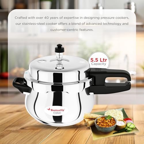 Size:LargeStainless steel cooker with aluminum thermal base. Induction stove compatible unique curved shape provides extra space at the bottom of the body enables better stirring of food. 5 years warranty.