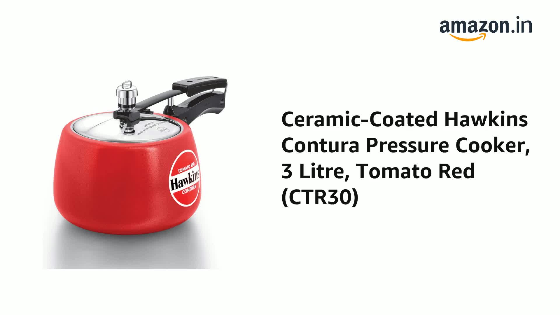 Hawkins 3 Litre Contura Pressure Cooker, Ceramic Coated Handi Inner Lid Cooker, Tomato Red (CTR30)