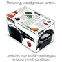 Each pressure cooker made by Hawkins features an inside fitting lid. This design is inherently safer than conventional pressure cookers. To open any Hawkins cooker, you have to first lower the lid slightly into the body of the cooker; and that cannot be done until the steam pressure inside the cooker falls to a safe level. Thus Hawkins pressure cookers are pressure-locked for safety - like a jetliner door!