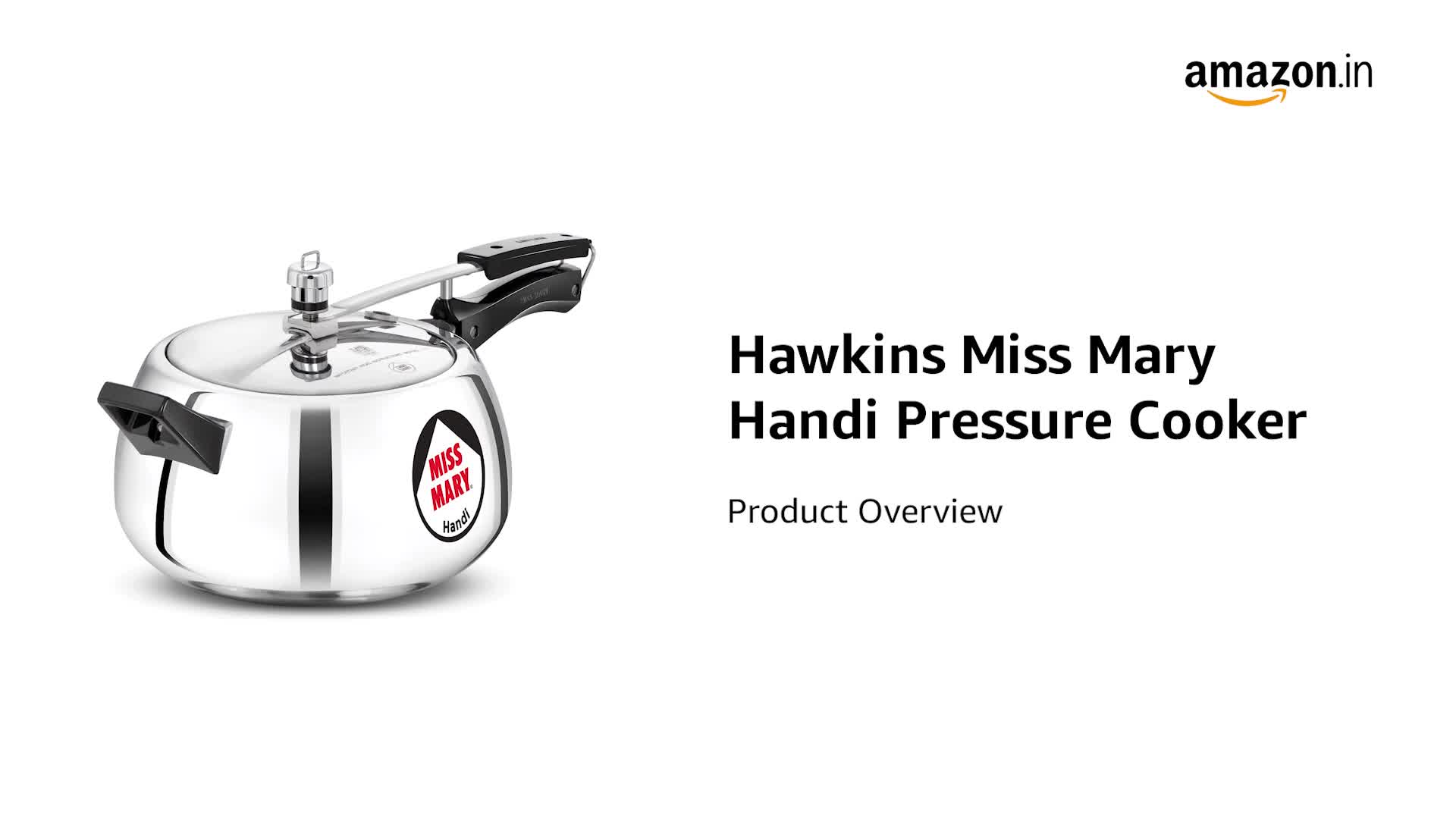 Each pressure cooker made by Hawkins features an inside fitting lid. This design is inherently safer than conventional pressure cookers. To open any Hawkins cooker, you have to first lower the lid slightly into the body of the cooker; and that cannot be done until the steam pressure inside the cooker falls to a safe level. Thus Hawkins pressure cookers are pressure-locked for safety - like a jetliner door!